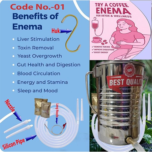প্রিমিয়াম কোয়ালিটি কফি এনিমা কিট। যা আপনার শরীরের ডিটক্সিফিকেশন প্রক্রিয়াকে আরো কার্যকর  এবং সহজ করে তোলে। এই কফি এনেমা সেটটি এমন ভাবে তৈরী করা হয়েছে যাতে আপনি ঘরে থেকেই নিরাপদ ও আরামদায়ক এনেমা প্রত্রিয়া সম্পন্ন করতে পারেন।